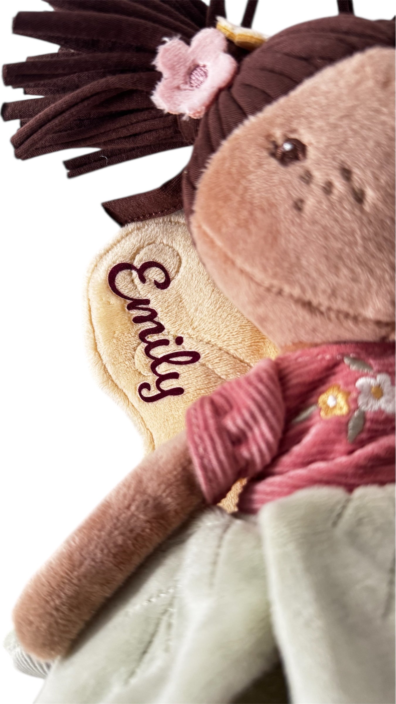 Muñeca de felpa suave hada Evi. Dulce carita con bonitas alas y su falda de tul.